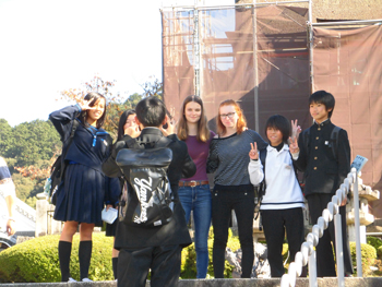 ミッションには、「狛犬の前で大きな口を開けて写真を撮る」や「外国からの観光客にインタビューして写真を一緒に撮ってもらう」などいろいろありました。どの班も、仲間と協力して楽しみながら取り組めました。観光シーズンで混雑する中にもかかわらず、時間もほぼ守って行動できました。