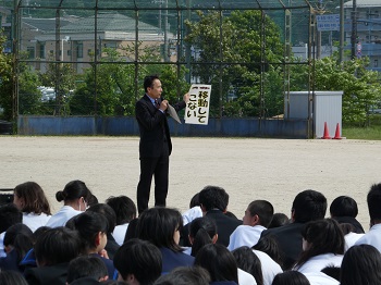 講評では、「集合後の素早い点呼」の大切さ、「落ちてこない、倒れてこない、移動してこないところへの避難」の大切さについて確認しました。