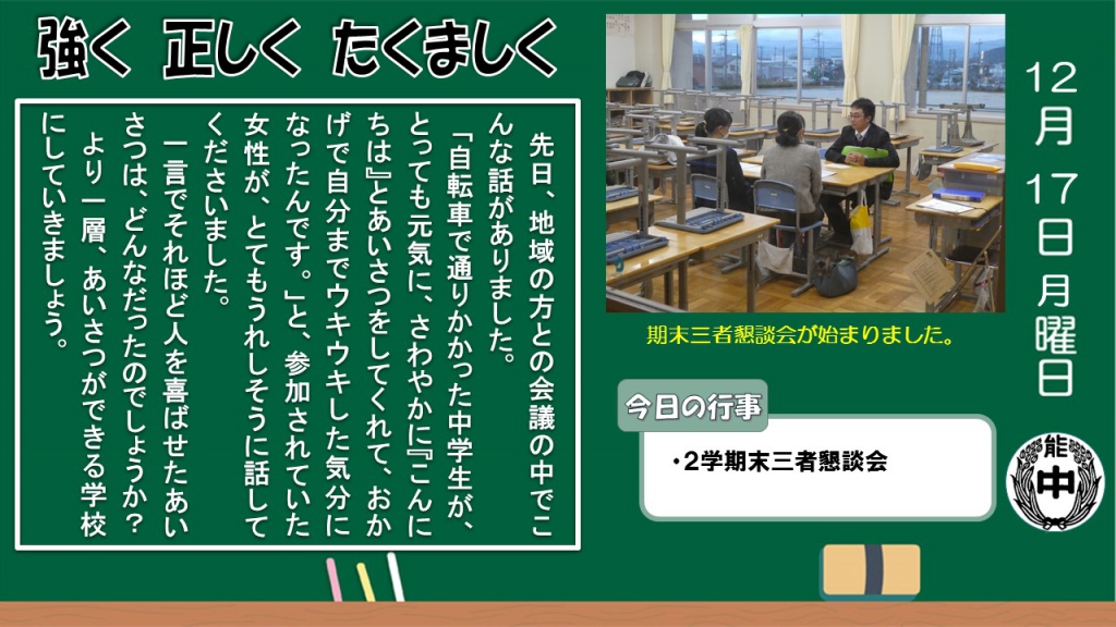 |   | |  | | 日誌| 2018/12/18 | 12月17日(月) |  | by 校長 |
