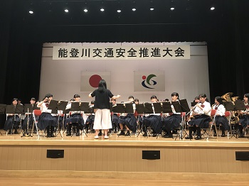 大会の最後に、アトラクションとして本校吹奏楽部が演奏を披露してくれました。いつもどおりの素晴らしい演奏でした。吹奏楽部は、地域のさまざまな行事に引っ張りだこです。