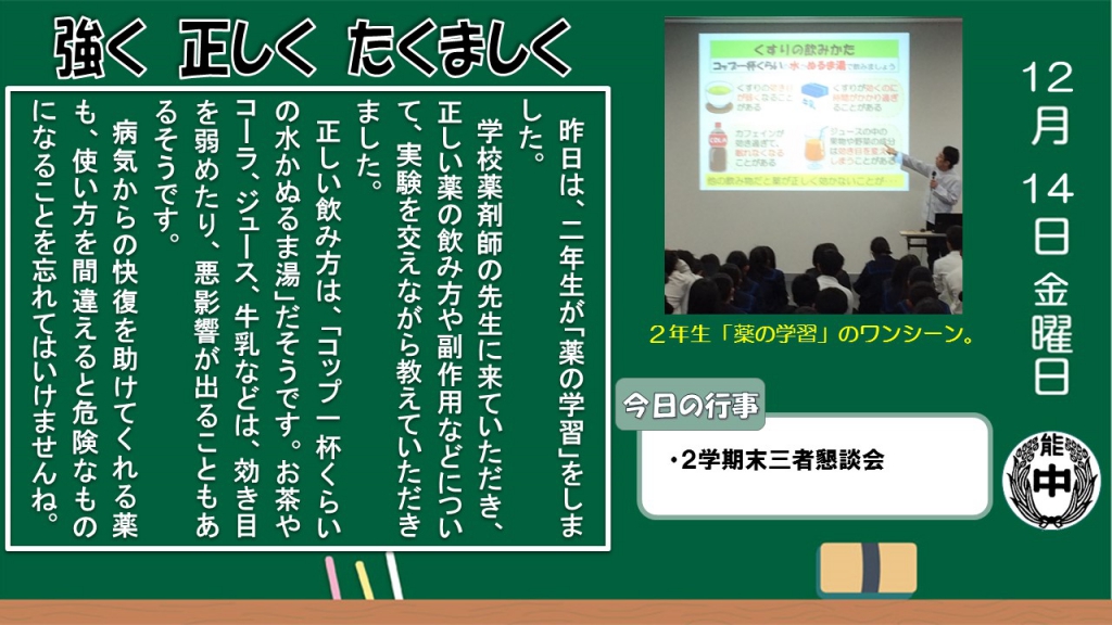 |   | |  | | 日誌| 2018/12/17 | 12月14日(金) |  | by 校長 |