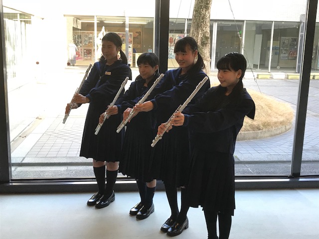 1月13日(土)、守山市民ホールで開催された「滋賀県アンサンブルコンテスト」に、予選を勝ち抜いた本校吹奏楽部フルート四重奏が出場しました。