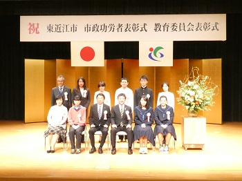 文化の日に東近江市教育委員会表彰式が行われ、本校からは、陸上競技部の4名と男子バドミントン部の1名、団体として陸上競技部がスポーツ賞を受賞しました。
