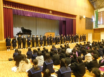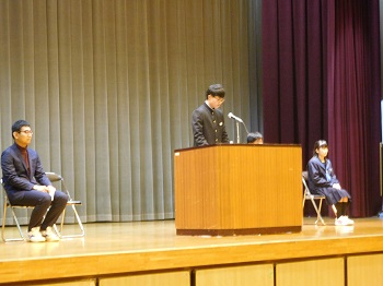 その後、各学年の代表生徒と、年男の教員が「今年の抱負」を述べました。この日も、全校生徒が静かに集中して話を聞くことができました。