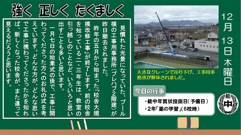 |   | |  | | 日誌| 2018/12/14 | 12月13日(木) |  | by 校長 |