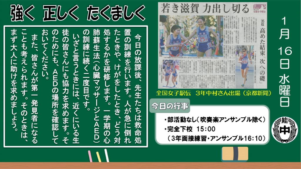 |   | |  | | 日誌| 2019/01/16 | 1月16日(水) |  | by 校長 |