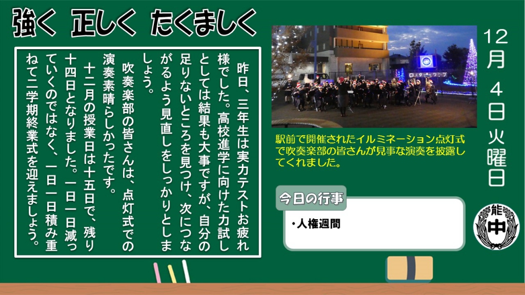 |   | |  | | 日誌| 2018/12/05 | 12月4日(火) |  | by 校長 |