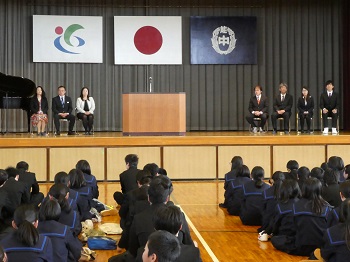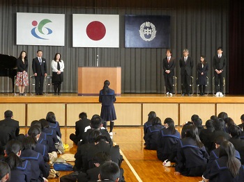 年度末人事異動によりお別れする先生方の離任式を行いました。