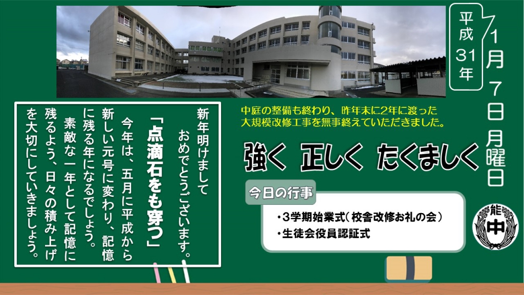 |   | |  | | 日誌| 2019/01/08 | 1月7日(月) |  | by 校長 |