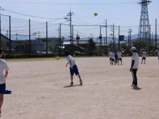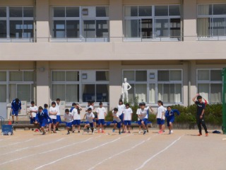 暑い中、50m走、ハンドボール投げ、立ち幅跳びなど・・
