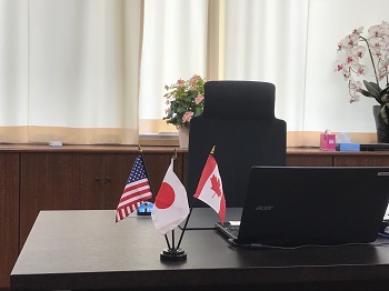 同じく10日からは、アメリカ在住の生徒1名も体験学習にやってきて、国際色豊かになっています。校長室には、3か国の国旗をかざりました。生徒たちには、何気ない交流の中で国際感覚を身に付けてほしいと思います。