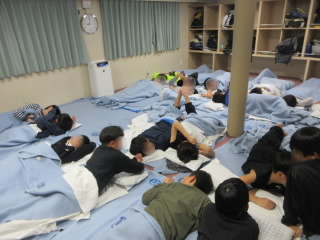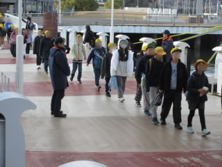 19()10()の2日間、五個荘小学校の児童とフローティングスクールに行ってきました。1日目の朝、一緒に乗船する五個荘小学校の児童と少し緊張しながら対面し「うみのこ」に乗船しました。乗船後は班の仲間と活動する時間が増えるにつれて少しずつ表情もやわらぎ、積極的に会話を交わす姿も見られるようになりました。