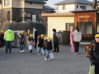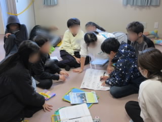 2学期の登校の反省と冬休みの約束、そして集団登校の集合時刻や出発時刻の確認のため地区ごとに集まり、班長さんを中心に振り返りを行いました。