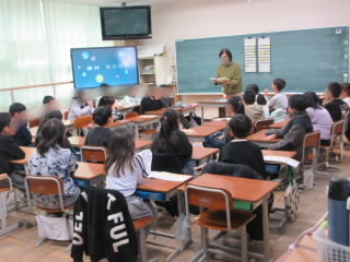 クイズ、船岡中学校の紹介、中学校でやってみたいことを英語で書いた後に交流など60分授業でしたがあっという間に時間が過ぎました。聖徳中学校に進学する子どもたちの方が多いですが、どちらの学校に進学する子どもたちも同じように取り組む姿を見て、さすが布引小学校の子どもたちだなと感心しました。