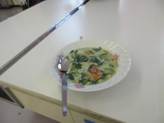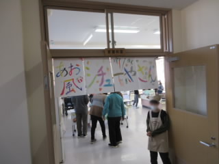 そよかぜ学級、あおぞら学級の児童が学級園で栽培した野菜などを使いシチューづくりに挑戦しました。今日までに、お客さんへのおみやげやお店の看板なども準備し調理室は本当のお店のようでした。1時間目から準備をはじめました。材料を洗う、切る、煮る、混ぜるなど役割分担をしながら進めました。昼休みには、職員もお客さんとして来店し、朝から心を込めて作ったシチューをいただきました。お客さんの呼び込み、お金の計算、座席への案内、盛り付け、運搬、片付けなども声を掛け合いながら手際よく進めることができました。おいしかったです。ごちそうさまでした。