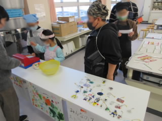 総合的な学習の時間の学習「みんなに優しい町づくり」の学習で社会福祉協議会の方や聴覚障害の方に来ていただきました。耳が不自由な方がコミュニケーションをとる手段として、手話や身ぶり、筆談、手のひらに指で文字を書く、補聴器などがあることを教えていただきました。また、一部耳が不自由だとつけない仕事もあるけれど耳の聞こえる人と同じように仕事をしていることも教えていただきました。さらに、声には出さず口を動かくことで思いを伝える体験もしました。口の動きだけでは、「うま」、「くま」、「くるま」、「しま」は前後の文脈がわからないと理解できないことも体験しました。授業後半では、身ぶりだけで伝える伝言ゲームをしました。みんなが住みやすく、優しい町にするにはひとりひとりが相手を思いやるやさしさと想像力が必要であることをお話や体験を通して学びました。この学習を通してみんなに優しい町にするために必要なものや自分にできることを館がるきっかけになればと思います。