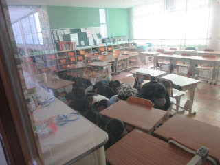 不審者が学校に侵入をしたという想定で避難訓練を行いました。子どもたちには、安全が確保されるまで学級で集まりってこもる、放送や先生の指示をしっかりと聞く、不審者に気付かれたり刺激したりしないように静かにすることをめあてにして実施しました。各教室の出入り口付近には机やいすを集めてバリケードを作るとともに、廊下から見えくいように廊下側の壁際で身を身を潜めました。真剣に取り組むことができました。