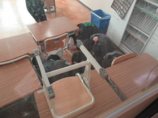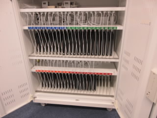 昨日、新しいipadに更新していただき、本日から本格的に使用できるよう放課後に各教室へ移動させました。早速、今朝からIDやパスワードの設定をしています。