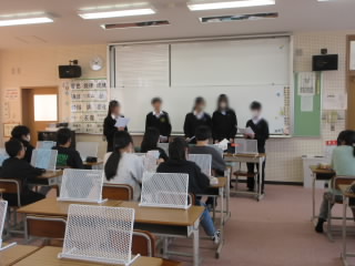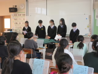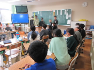 聖徳中学校、船岡中学校の生徒会のメンバーが来校され、中学校生活のイメージを持ってもらえるよう学校説明をしてくださいました。