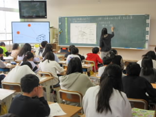 小学校と中学校で共通している部分や違い、学習や行事の説明などを電子黒板に映しながらとても丁寧に説明してくださり緊張気味だった子どもたちも少し表情が和らいだように感じました。