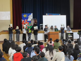 子どもたちは最後までしっかりと話を聞くことができていました。温かい雰囲気の中で児童集会を行うことができました。