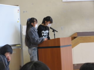 終業式では、各学年の代表者が2学期がんばったことや、3学期の抱負をしっかりと発表することができました。