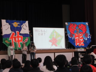 最後には、6年生が制作をした大凧や判じもんの説明がありました。