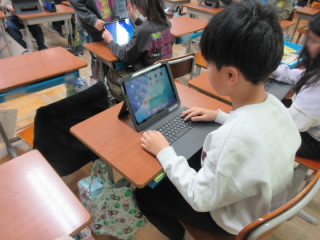 先週は大掃除週間のため毎日掃除をしました。ライフアンドクリーン委員会が掃除の様子を確認し、翌日に反省の放送をしていましたが、今日はそのまとめとして掃除の時の様子を学年ごとに写真に撮り映像とともに振り返りを行いました。