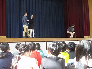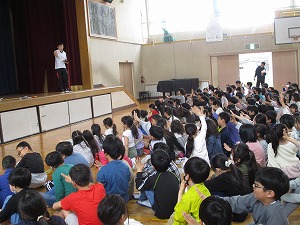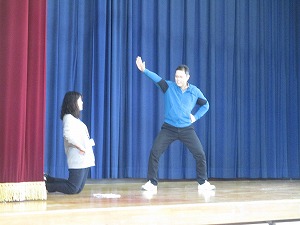 のテーマについて、寸劇を交えて「アピール」しました。普段見られない先生たちの振り切った演技(?)に大喜びの子どもたちでしたが、「やくそく」の大切さもわかってくれたのではないかと思います。