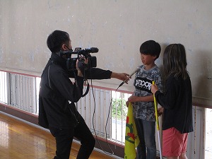 この日は、東近江スマイルネットのケーブルテレビの取材も入り、教室後には緊張した面持ちでインタビューに答えている子もいました。
