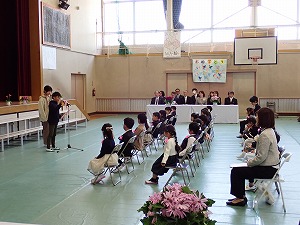 新入生のみんなは、6年生に手をつないでもらって、笑顔で体育館に入場してきました。呼名にも元気に返事でき、明日からの小学校生活に希望を持って帰っていきました。今年度もにぎやかな布引小学校になりそうで、楽しみです。