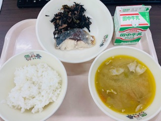 ご飯 牛乳 鰺の塩焼き ひじきの炒め煮 豚汁