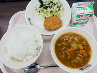 冬野菜カレーライス 牛乳 メンチカツ 海そうサラダ