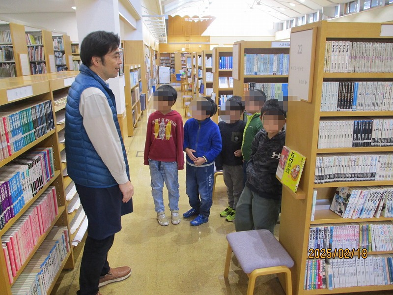 読み聞かせや館内の案内、書庫の見学、職員の仕事の説明などもりだくさんなメニューで、子どもたちは興味津々でした。