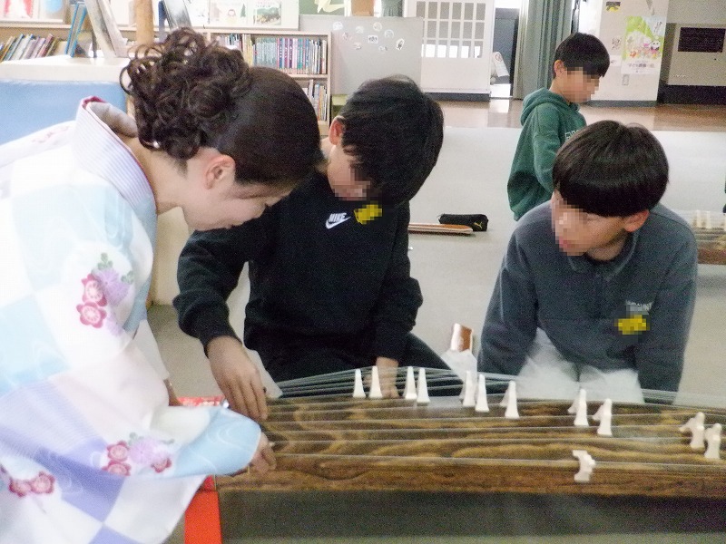 生活科の時間に、昔あそびに挑戦しました。学習ボランティアとして、おうちの方も来てくださいました。運動場に雪が積もっていたため凧あげはできませんでしたが、室内で、こま、けん玉、めんこ、お手玉、かるた、すごろくのコーナーに分かれて、それぞれ自分がしたい遊びに体験しました。