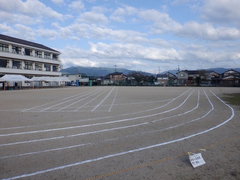 午後には、5,6年生と、PTAの三役様と保健体育部の皆様、教職員とで前日準備をしました。あとは明日を迎えるのみです。