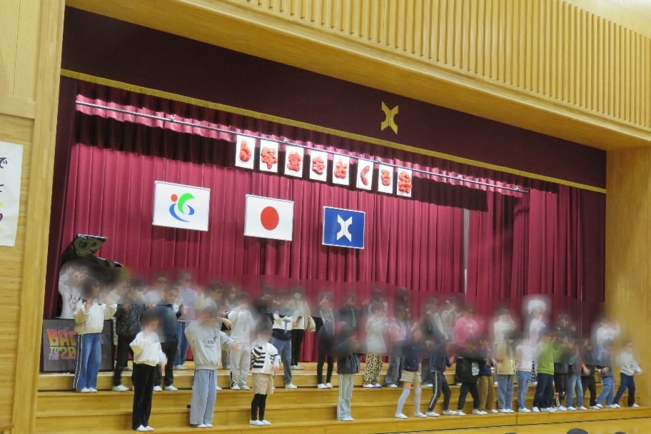 休みが多い中、よく最後までやりきった2年生。「かさじぞう」ならぬ、「思い出じぞう」。国語で勉強してきたことを生かしてがんばりました。学級閉鎖のために練習時間があまりとれなかったのによくがんばりましたね。1年間で頼もしくなった「お兄さん、お姉さん」らしさが伝わってきました。何事にも対応し、頑張っていこうとする思いがあふれる発表です。