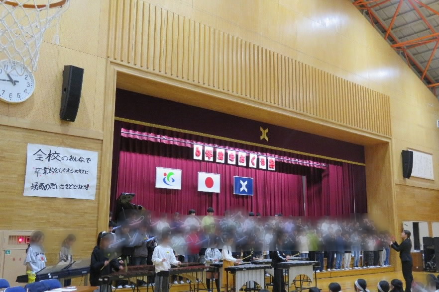 これまで何回も練習を重ねてきた6年生を送る会の本番です。しかし、インフルエンザの流行で延期となり、ようやく本番でしたが、学級閉鎖となる学年もありました。本来なら、延期をしたいところでしたが、卒業式まで13日となり、卒業にむけての準備、学年のまとめ学習や活動などがあり、これ以上、日程調整ができませんでした。また、子どもたちの気持ちの上でも延期に次ぐ延期で、落ち込む子どももいます。なんとか開催できないかと先生たちとも意見を出し合いました。延期をする意見、ビデオ録画したもので発表する意見、校内放送で発表する意見など、それぞれの学年の子どもたちの様子や思いも先生たちから聞きながら考えた結果、学級閉鎖になった学年のみんなには大変申し訳ないのですが、その学年はビデオ録画したもので発表し、他の学年は予定通りに開催することにしました。感染予防のためには、校内放送等での発表がよいのかもしれませんが、一番大切にしたのは、「6年生に直接、お礼を伝えたい」という子どもたちの思いです。また、「体育館での発表を見たり、感じたりする経験をすることで、来年はこんなことをしたいなあ・・・次は自分たちでやっていくんだなあ・・・と思うでしょうから、できる限り生の発表を見させたいです。」と言ってくださる先生もいました。でもこれ以上の感染拡大は防がなければいけません。子どもたちにとって大切なことと・・感染予防を考えて、発表学年の入れ替え制と教室への生配信で開催することにしました。言うのは簡単ですが、生配信するのは大変です。どうしても音と動きがずれたり、音が小さかったり、はっきりと聞こえなかったりするため、長いコードや無線機等で何回も何回もいろいろな方法を試してくださってようやく実現できました。