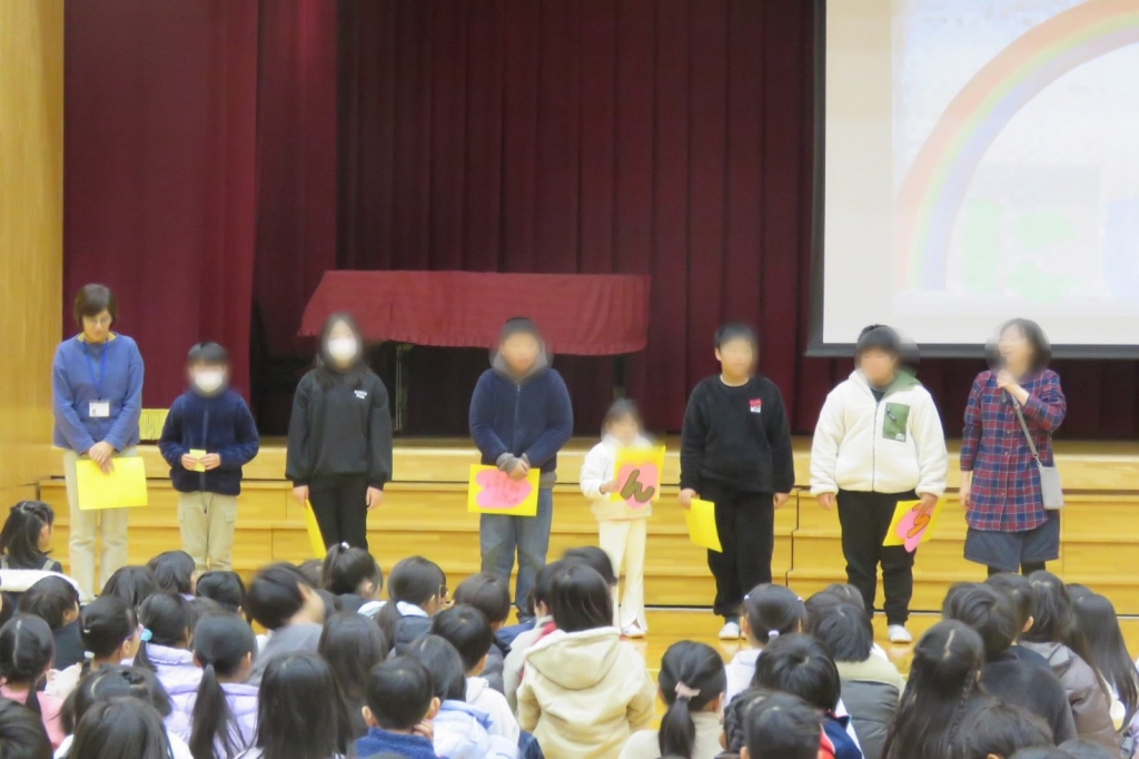 今度はなんと数名の5年生がステージに上がって、私(校長)への餞別の言葉を話し始めてくれるではありませんか…。そして、卒業式でも全校で歌った「さようなら」を子どもたちが「全力」で歌ってくれました。いつ、どんな時も子どもたち一人ひとりの顔をくまなく見るのが癖になっている私(校長)ですが、今日は一切見ることができませんでした。…見てしまったら号泣してしまいます…。