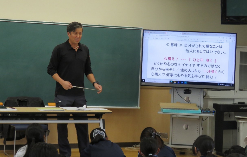 各学年の代表者(今回は1組の出席番号1番の者)一人ずつに壇上で「修了証」を授与します。トップバッターは、1年生ANさん。きれいな姿勢にきれいなお辞儀、私(校長)の目をずっと、まっすぐに見ながら「修了証」を受け取ります。一人目から、こんなに完璧で、見事な「受け取り方」をしてくれるので、また胸の奥の方からぐっとくるものがこみあげてきて、私の涙腺を攻めてきます…。そんな気持ちをぐっとこらえながらなんとか5人の修了証授与を終え、いよいよ「校長講話」です。