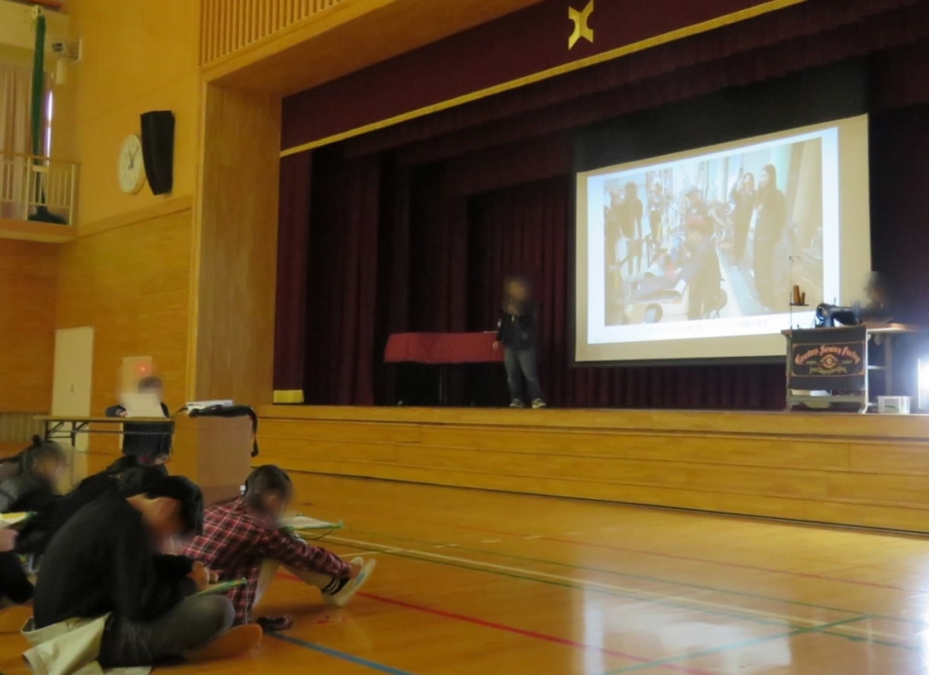 ふざけた「校長講話」の後は、生徒指導主任のH先生が、「春休みの生活」や「来年度に向けて」について、きちんと子どもたちに伝えてもらいました。(大事なことはいつも校長以外の先生たちがきちんと伝えてくれます…なんともかたじけない…)その後は、入学式で歌う歌の練習を少しして、これで「修了式」が終わるかなと見せかけておいて…。