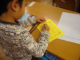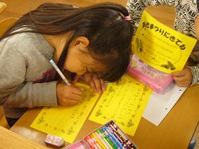 1年生では、29日の「南っ子学習発表会」の秋祭りの招待状を書きました。