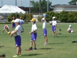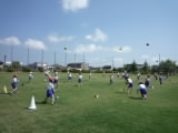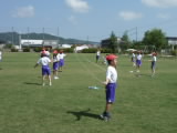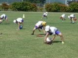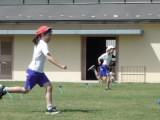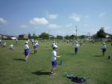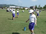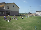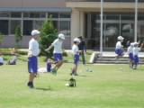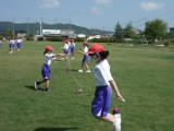 本日の1校時、4年生が体育の学習を運動場で行いました。広い運動場にクラスごとに分かれて、内容の違った学習に取り組みました。