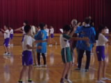 6年生が、学校に入ったばかりの1年生に「江州音頭」を教えるため、地域で江州音頭を学んでいる方から江州音頭の踊り方のコツを教えていただきました。昨年度までの経験がある6年生は、踊り始めるとすぐにコツを思い出したようです。