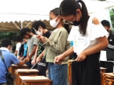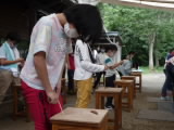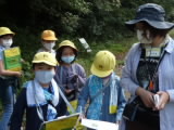 4年生が9月10・11日と二日に分かれて「やまのこ事業」を実施しました。市内の愛知川河畔にある里山の「河辺いきものの森」に出かけて、森探検や竹細工に挑戦しました。森の小道でサワガニを見つけたり、水辺ではヘビが泳いでいるところに出くわしたりして、発見と驚きが続出の森探検でした。竹細工では、竹でお箸を作ることから始めて、竹の特性を生かした小物や遊び道具を楽しみながら作りました。
