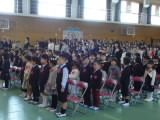 入学式では、来賓の皆さん、保護者の皆さん、2年から6年の皆さん、そして、先生たちが新入生85人の小学校生活のスタートをお祝いしました。