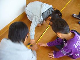 3年生では、巻き尺を使って長さを測る学習をしていました。ワークスペースの