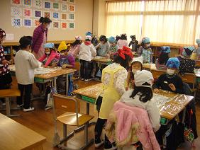 5時間目の2年生の教室を訪ねてみると、収穫したサツマイモを使って