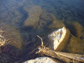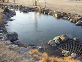 運動場横にあるビオトープに「氷がはっているよ!」と、子どもたちが