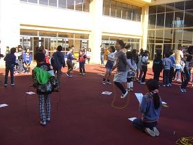 「チャレンジなわとび」では、個人でなわとびをしたり、学級で長縄とびをしてい